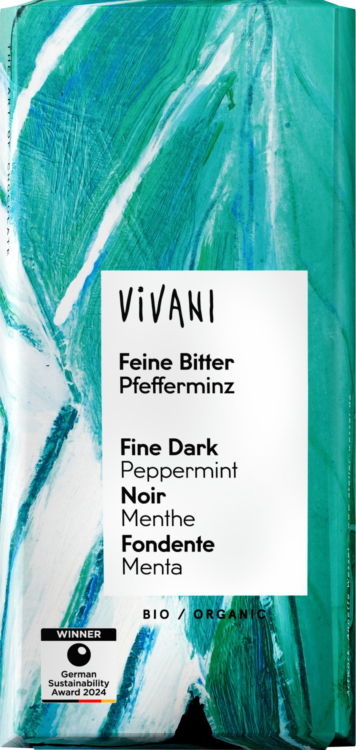 Allerfeinste Bitter Schokolade mit cremiger Pfefferminz-Füllung.