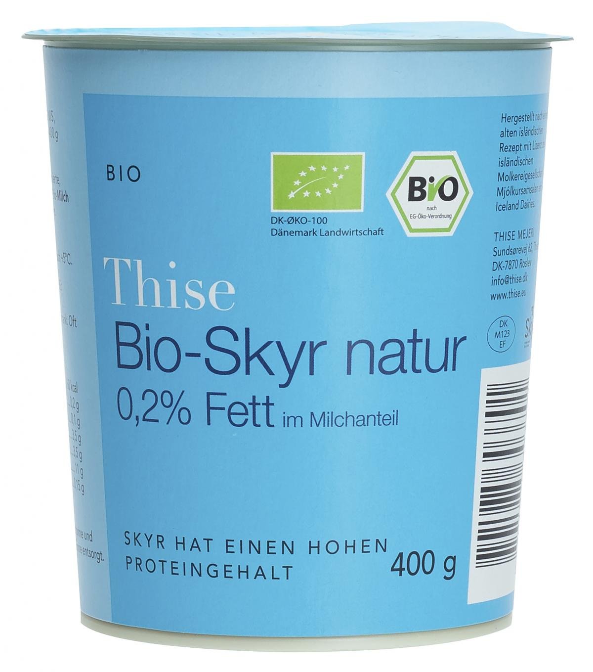 Konzentrierte, nicht homogenisierte, hochpasteurisierte entrahmte bio MILCH*, Milchsäurekulturen.