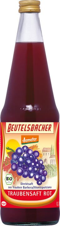 Vor allem die erlesenen Traubensorten Barbera und Montepulciano werden in sorgfältig ausgewählten ökologischen Anbaugebieten für unseren roten Traubensaft angebaut. Barbera überzeugt durch eine tiefrote Farbe und eine intensive Fruchtsäure. Montepulciano schmeckt lieblicher als Barbera und ermöglicht daher ein ausbalanciertes Zucker-Säureverhältnis. Die erntefrischen Trauben werden schonend gepresst - für ein klassisch kräftiges Bouquet dieses Direktsaftes.