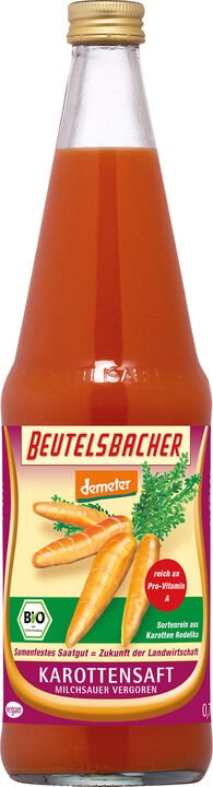Sortenreiner milchsauer vergorener Direktsaft aus ernte-frischen Karotten ´Rodelika´, die von biologisch-dynamisch... mehr anzeigen