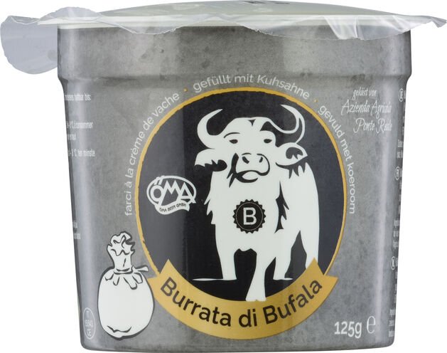 ÖMA Burrata di Bufala gibt es im praktischen 125g-Becher sowie im 1kg-Eimer für die Bedientheke.