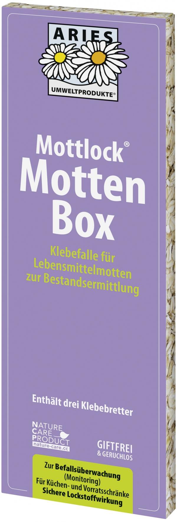 Unsere bewährten Mottlock 3er Klebefallen gegen Lebensmittelmotten sind in der neuen Mottenbox enthalten. Schutzfolie entfernen, Klebebrett vorsichtig in die Mottenbox schieben, an den Rändern festdrücken - fertig! Nun die Box im Vorratsschrank platzieren und männliche Lebensmittelmotten effektiv, diskret und nachhaltig einfangen.