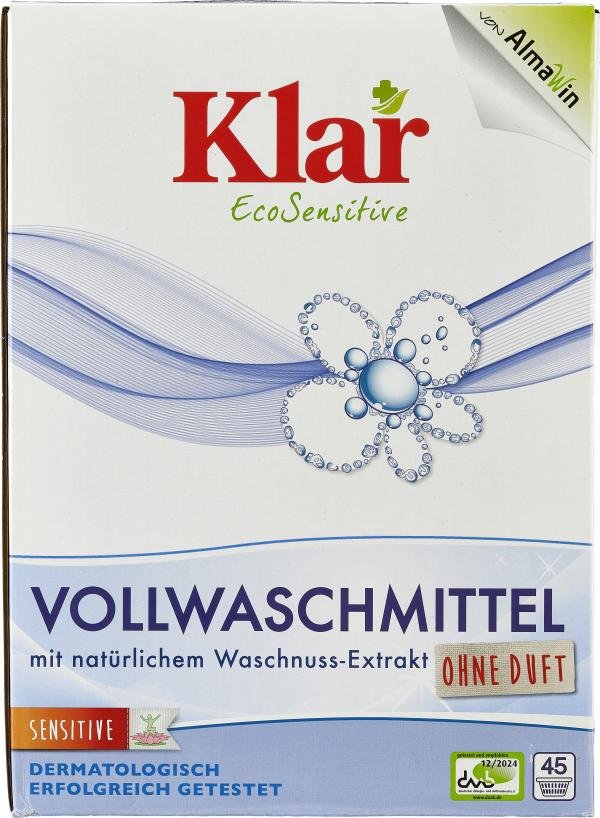 weniger anzeigenKLAR Vollwaschmittel mit natürlichem Waschnuss-Extrakt zeichnet sich durch seine hervorragende Waschkraft bereits ab 30 °C aus. Ein Waschkraftverstärker bildet aktiven Sauerstoff, entfernt selbst schwierige Flecken und lässt weiße Wäsche nicht vergrauen. Es enthält keine Enzyme, dafür aber Reisstärke für eine gute Griffigkeit und einfaches Bügeln.