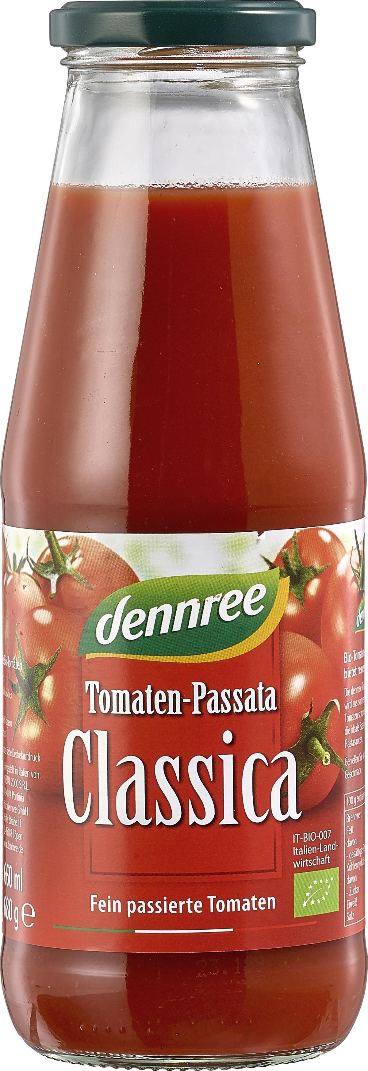 Bio-Tomaten-Passata Classica bietet reinen Genuss. Die dennree Tomaten-Passata Classica wird aus sonnengereiften italienischen Tomaten schonend hergestellt. Sie ist eine ideale Basis für schmackhafte Pastasaucen. Genießen Sie den fruchtig-aromatischen Geschmack.
