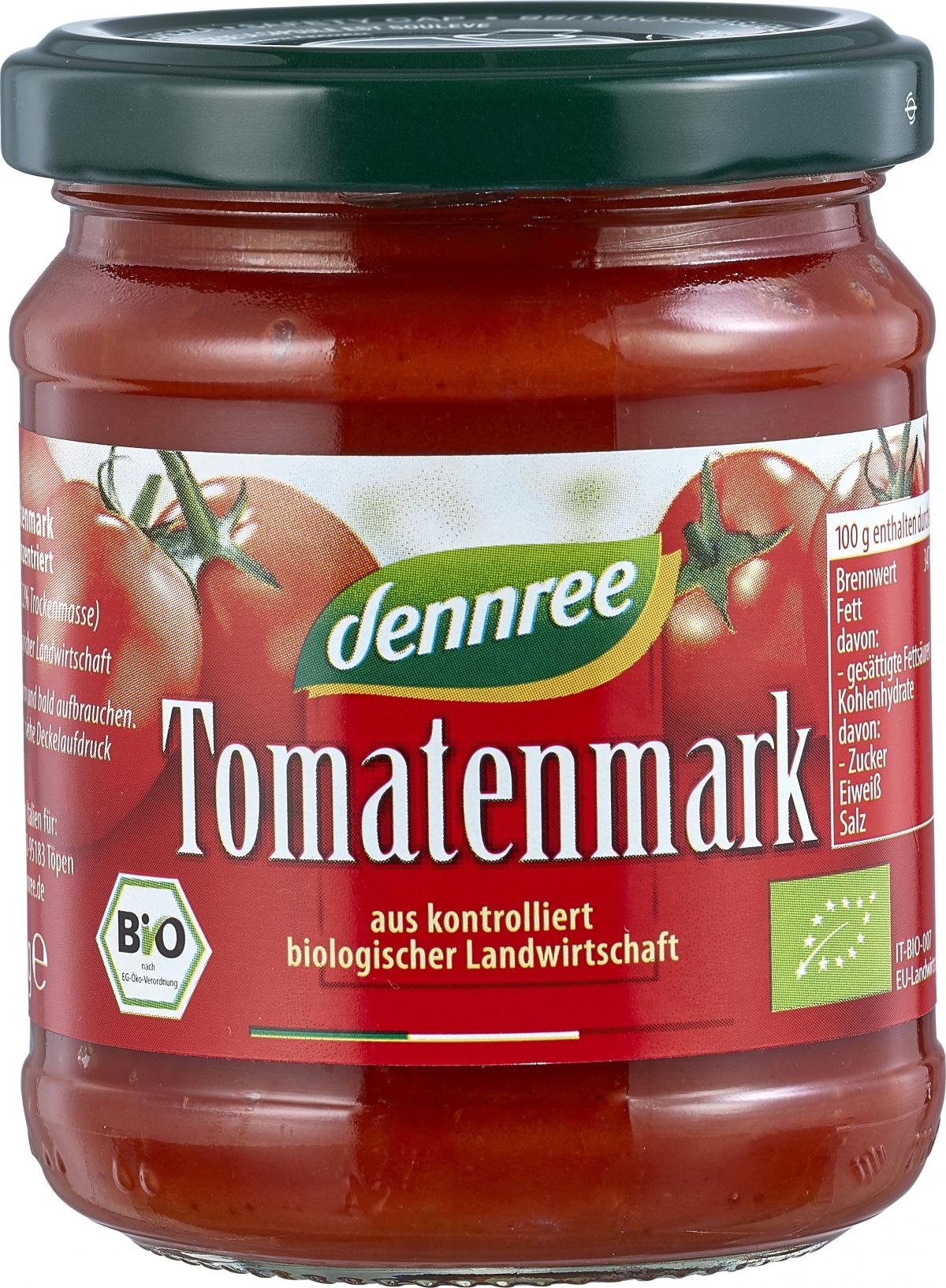 Bio-Tomatenmark bietet reinen Genuss. Das dennree Tomatenmark wird aus sonnengereiften Tomaten schonend hergestellt. Genießen Sie den fruchtig-aromatischen Geschmack.