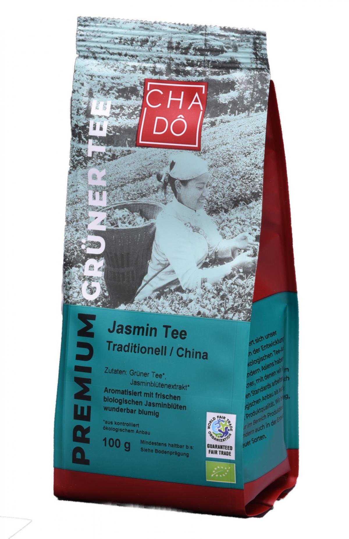Klassischer Grüntee mit dem Duft von Jasminblüten. Ohne Zusatz von Aromen.