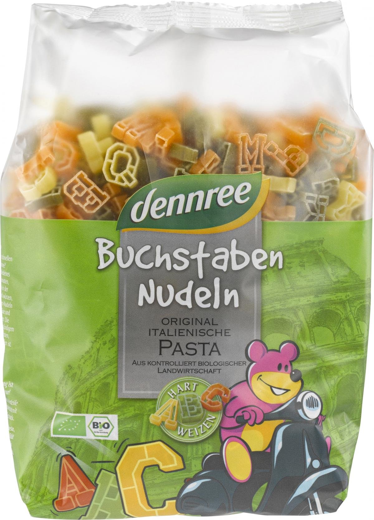 Bio-Hartweizen-Buchstaben-Nudeln bieten reinen Genuss. Für die dennree Hartweizen-Buchstaben-Nudeln wird nur ausgewählter Hartweizen aus kontrolliert biologischer Landwirtschaft verwendet und nach original italienischem Rezept schonend verarbeitet. Genießen Sie den exzellenten Geschmack und den idealen "al dente" Biss der dennree Pasta.