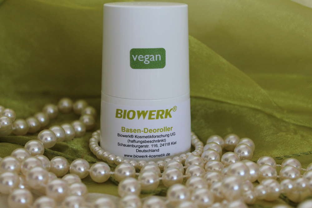Der pH-Wert des Biowerk® Basen-Deorollers ist alkalisch. Die Base kann den sauren Schweiß neutralisieren. Die Vermehrung der Schweißbakterien kann durch das von dem Basen-Deoroller erzeugte alkalische Milieu verringert werden. Die Reisstärke kann den Schweiß absorbieren. Ethanol reduziert die Schweißgeruch bildenden Bakterien. Der Deoroller enthält kein Zinkoxid und hinterläßt keine weißen Flecken auf der Haut.