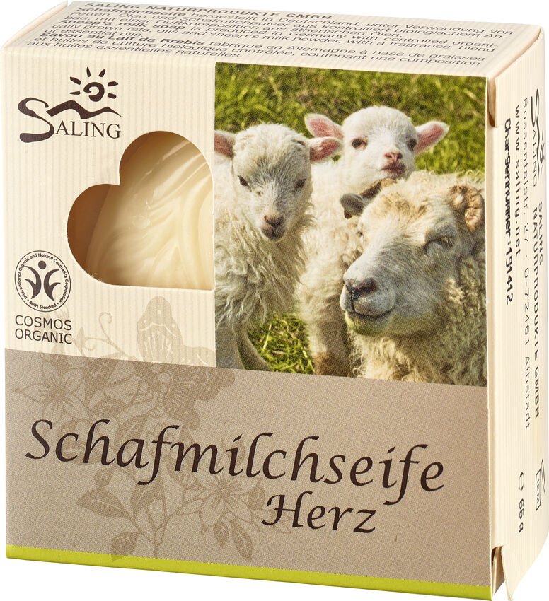 Schafmilchseife "Herz weiß" in der Faltschachtel mit Sichtfenster -cosmos organic zertifiziert -hergestellt in Deutschland -unter Verwendung von Fetten und Ölen aus kontrolliert biologischem Anbau -Duftkomposition aus ätherischen Ölen