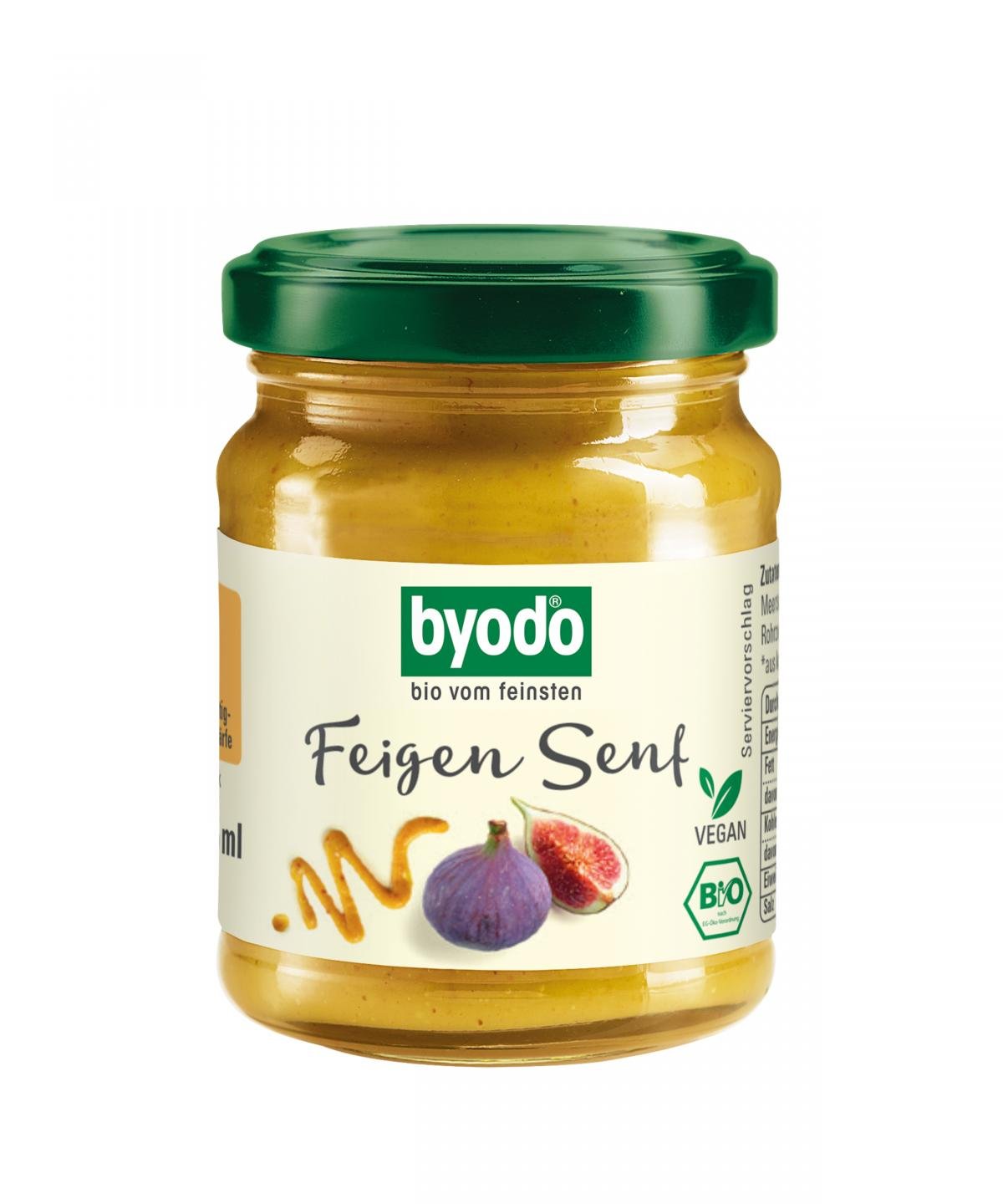 Leckere Bio-Feigen geben dem fruchtigen Byodo Feigen Senf seine ganz individuelle Geschmacksnote. Dank seiner süßen Senftnote harmoniert er wunderbar mit vielen Weichkäsesorten wie Camembert und Rotkulturen. Auch in Salatdressings, in Dips und auf Sandwiches ist diese Spezialität aus 100% Bio-Zutaten aus landwirtschaftlichem Anbau ein Genuss.